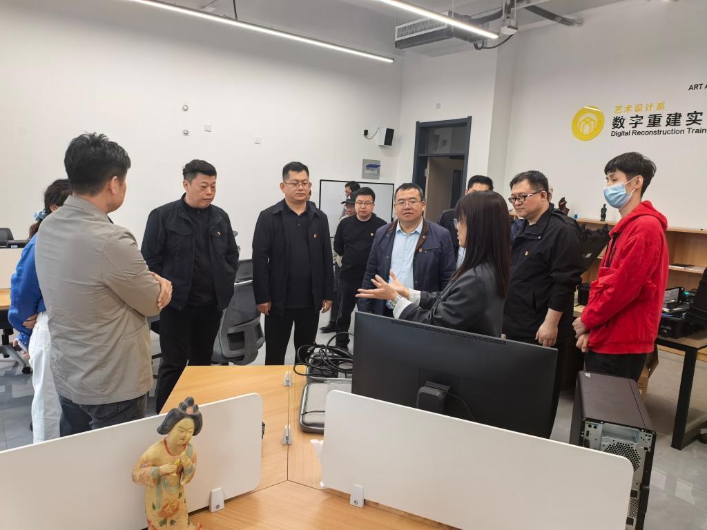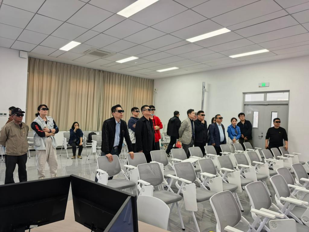 在考察过程中,党员们重点调研了虚拟仿真教学设备的应用情况,详细了解该校VR/AR教学机房、虚拟演播实验室、三维造型实验室等实训场地的建设规模、设备配置及运行模式,认真询问虚拟仿真技术在艺术设计、数字媒体等专业教学中的课程融入、实践应用及人才培养成效。党员们一边观摩虚拟仿真教学演示,一边记录设备参数、教学模式等关键信息,结合自身教学实践,深入思考如何将虚拟仿真技术融入本中心的艺术设计实践教学,推动教学模式革新,提升学生的实践创新能力。