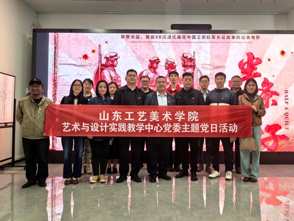 为深入学习贯彻党的创新理论,传承红色基因、厚植为民情怀,同时推动艺术设计专业实践教学改革,促进虚拟仿真技术与教学、党建深度融合,4月3日,艺术与设计实践教学中心党委组织全体党员赴山东文化艺术职业学院开展“VR沉浸式学党史、深调研促教学”主题党日活动,将“半条被子”红色教育与虚拟仿真教学设备考察有机结合,实现党性修养与专业能力的双向提升。